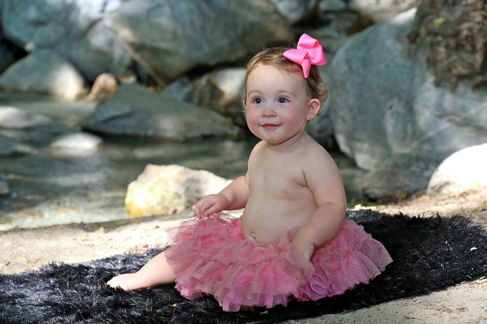 We then changed in to a pink tutu and pink bow. I wanted to keep it simple for the cake shots so that she could get as messy as she wanted. We actually managed to get a few smiles once she was half naked! lol